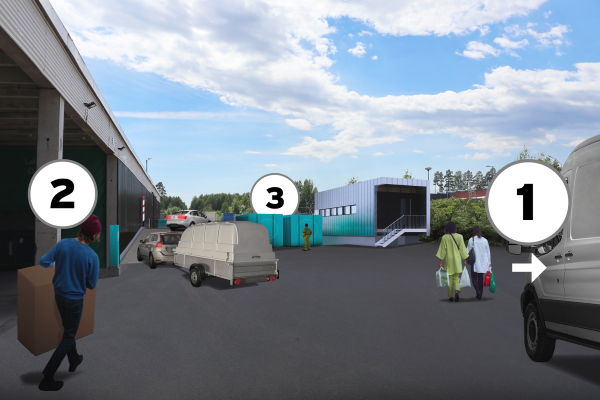 - Follow the sorting instructions and ask the staff for help if needed. Do not take any waste or items from the Kierrätyskeskus's donation point.