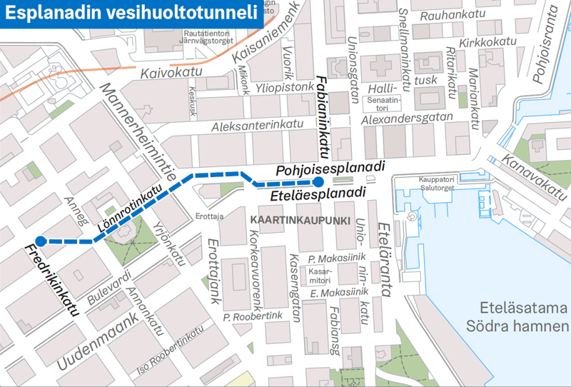 Rakennamme Esplanadin alueelle uuden vesihuoltotunnelin. Rakennustyöt toteutetaan vuosien 2025–2027 aikana.