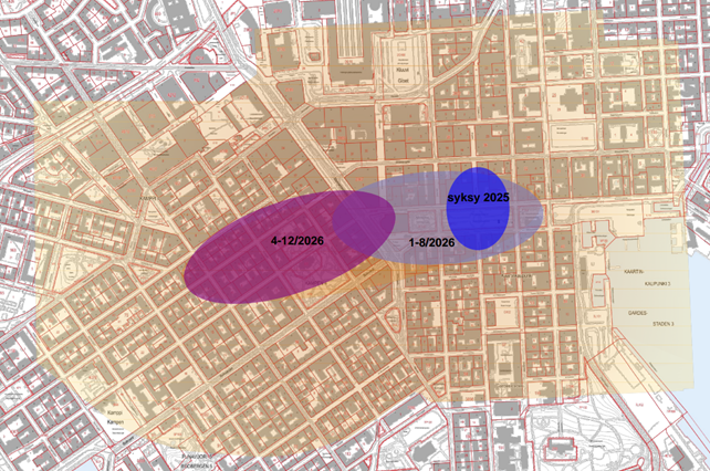Syksyn 2024 aikana tehtiin vesihuollon ja alueen katujen saneerausten yhteinen rakentamisen vaiheistussuunnitelma. Työn yhtenä tavoitteena on minimoida tulevan rakentamisen haittoja liikenteelle ja kiinteistöjen saavutettavuudelle. Työssä laaditaan arviot rakentamisen eri vaiheiden kestosta ja pyritään ajoittamaan suurinta haittaa aiheuttavat työt tiiviiksi kokonaisuudeksi ja näin lyhentämään haittojen kestoa. Työn valmistuttua voidaan tarkemmin arvioida koko saneerauksen kesto ja mille vuosille mikäkin osuus ajoittuu.