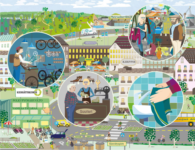 Kaupunkiympäristön toimiala / Ympäristöpalvelut. (2020). Helsingin kierto- ja jakamistalouden tiekartta. Helsingin kaupungin kaupunkiympäristön julkaisuja, 2020(10), 21.